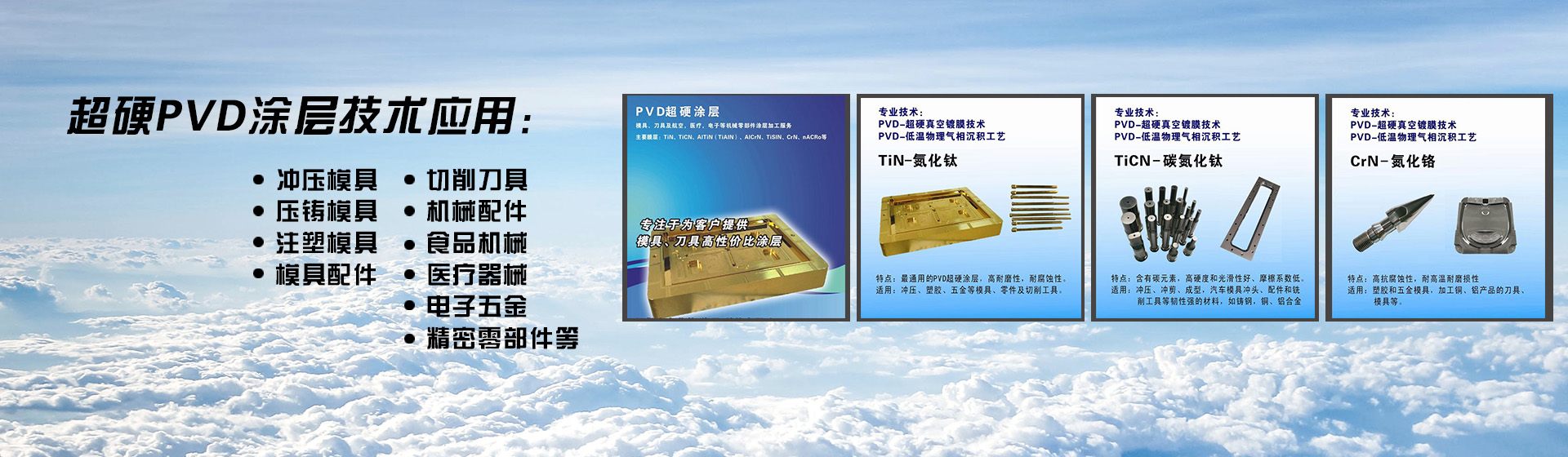 公司目前主要采用具有國(guó)際專(zhuān)利的德國(guó)物理氣相沉積(PVD)涂層技術(shù),專(zhuān)業(yè)為精密注塑、壓鑄模具、五金沖壓模具、拉伸模具、塑膠模具,模具配件,沖棒,絲攻,刀具等提供高品質(zhì)的超硬涂層服務(wù)。專(zhuān)注于提高工模具表面質(zhì)量、耐高溫、抗腐蝕、抗磨損、抗刮傷、等性能。杜絕或改善模具在生產(chǎn)中生刮花、拉傷、磨損、腐蝕、粘著、融合、燒死等現(xiàn)象...